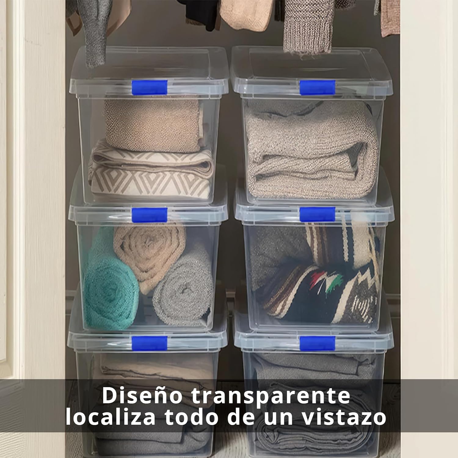 - Tapa segura y contenido visible: Cierre firme que protege lo almacenado del polvo y la humedad. El material transparente en todos los lados permite identificar el contenido sin abrir la caja, facilitando la clasificación y localización rápida de los objetos guardados.